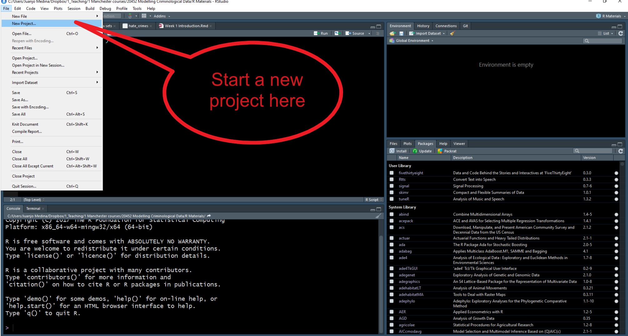 Puede crear estos subdirectorios utilizando el Explorador de Windows, o gestores equivalentes en otros sistemas operativos, o la ventana Archivos en RStudio.
