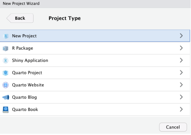 Ahora aparecerá otro cuadro de diálogo en el que tendrás que especificar qué tipo de proyecto deseas crear. Selecciona la primera opción, “New Project”.