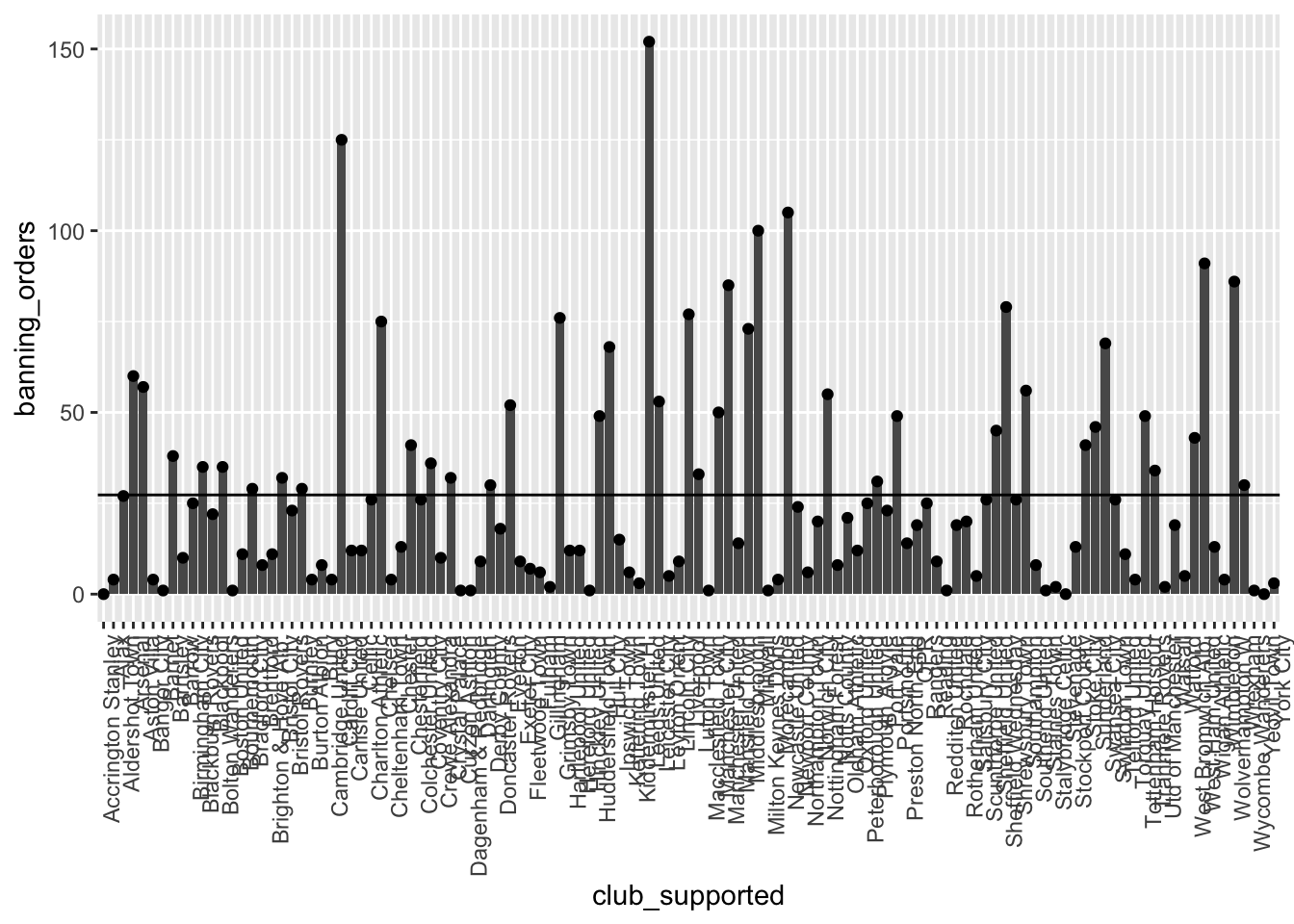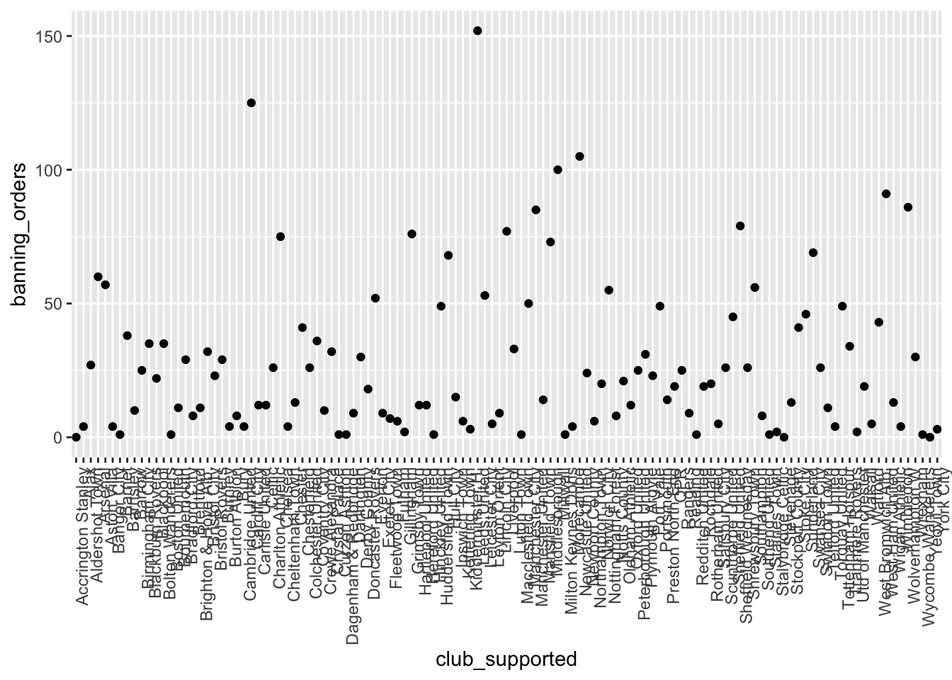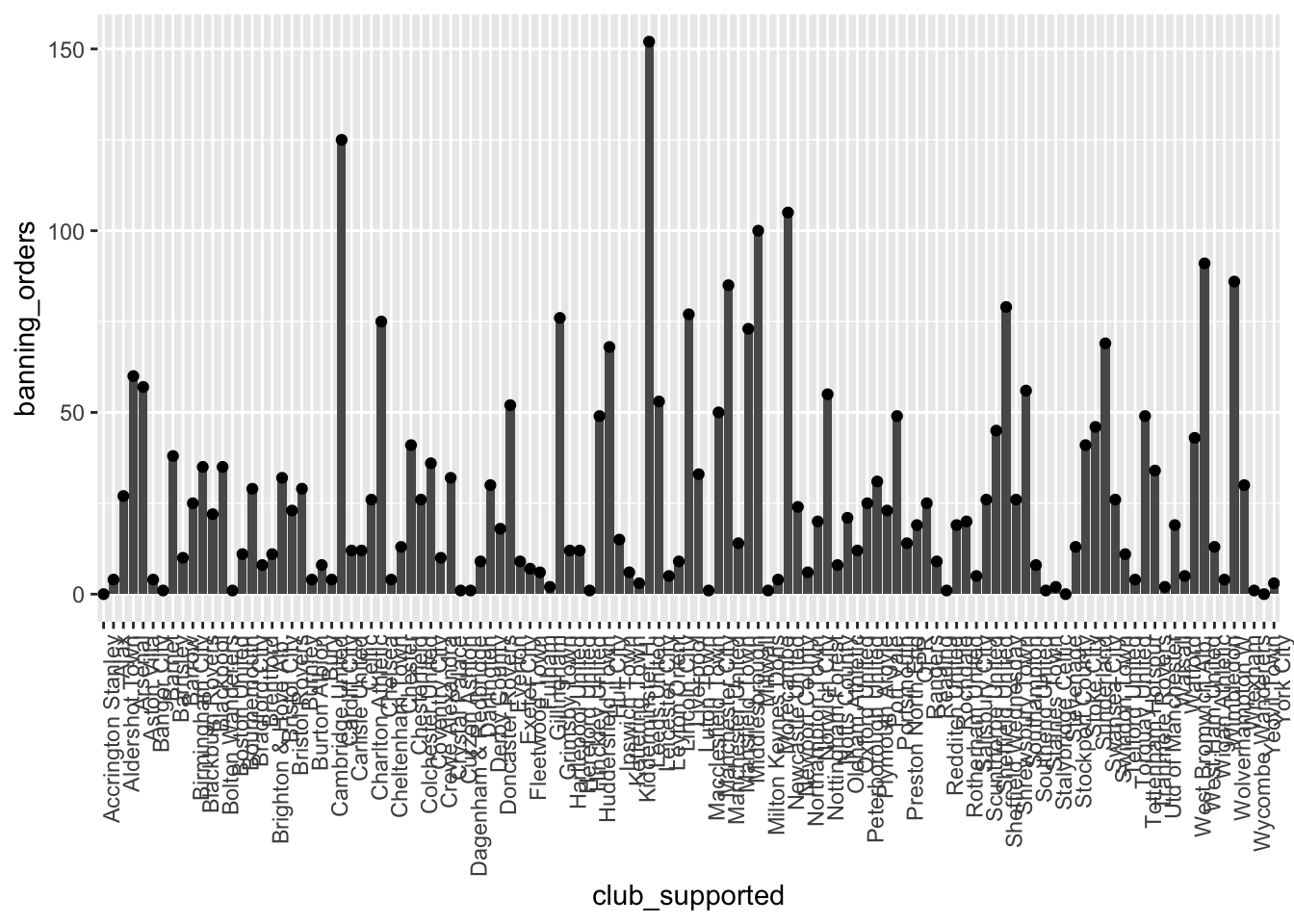 ggplot(data = fbo, aes(x = club_supported, y=banning_orders)) + #data