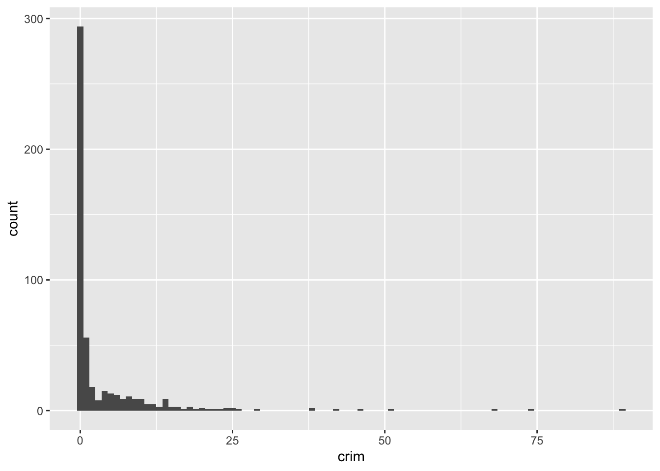 ggplot(Boston, aes(x = crim)) +