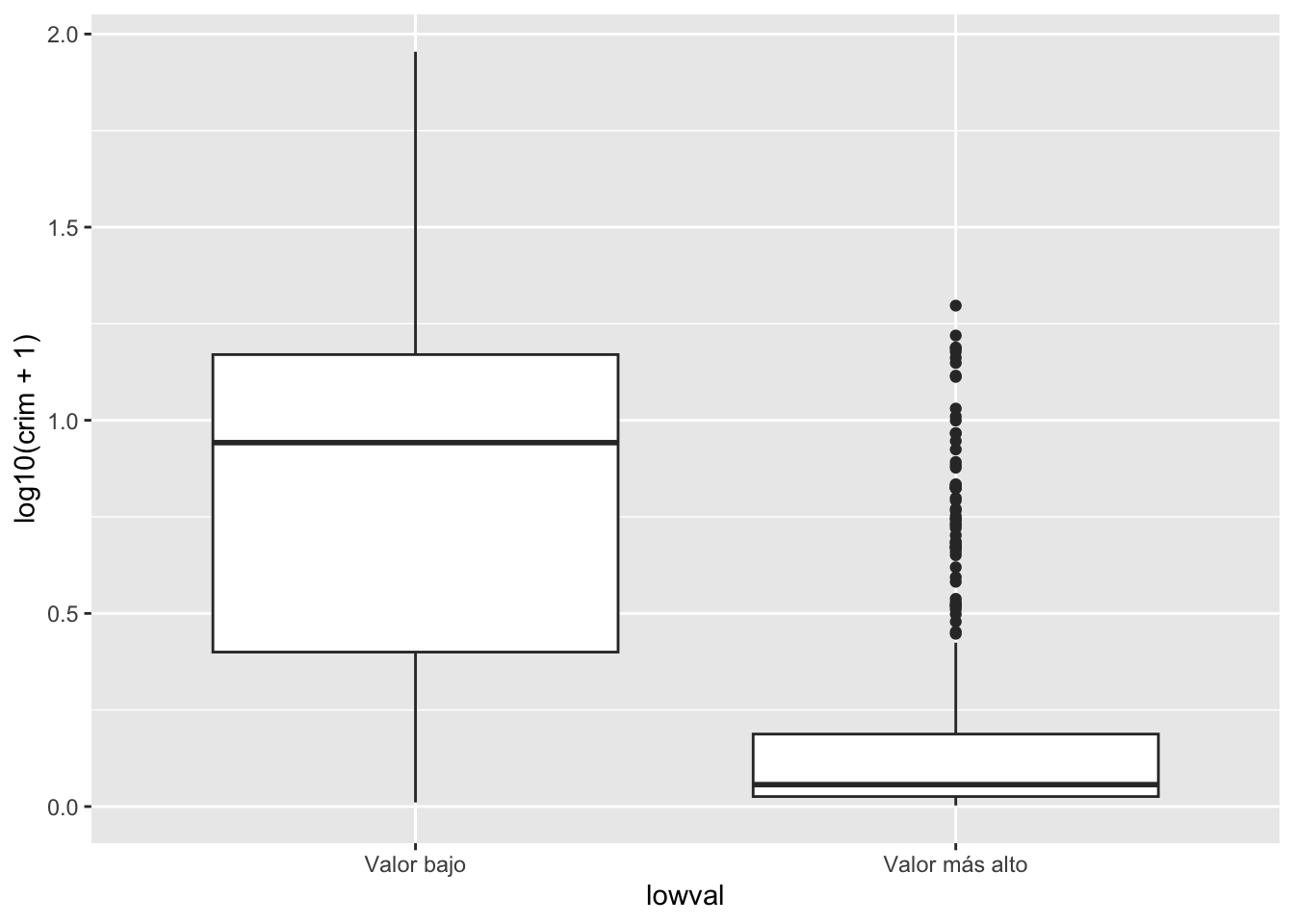 labs(x = "Valor medio de las propiedades (en dólares estadounidenses x 1000)",