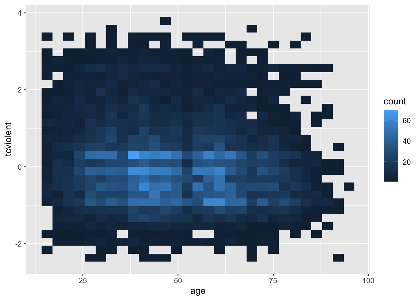 Sigue siendo difícil ver algo, aunque tal vez se pueda apreciar la menor densidad de los puntos en la esquina inferior derecha de la faceta que muestra a las víctimas de delitos. En un caso como este, puede ser útil trazar una línea suave