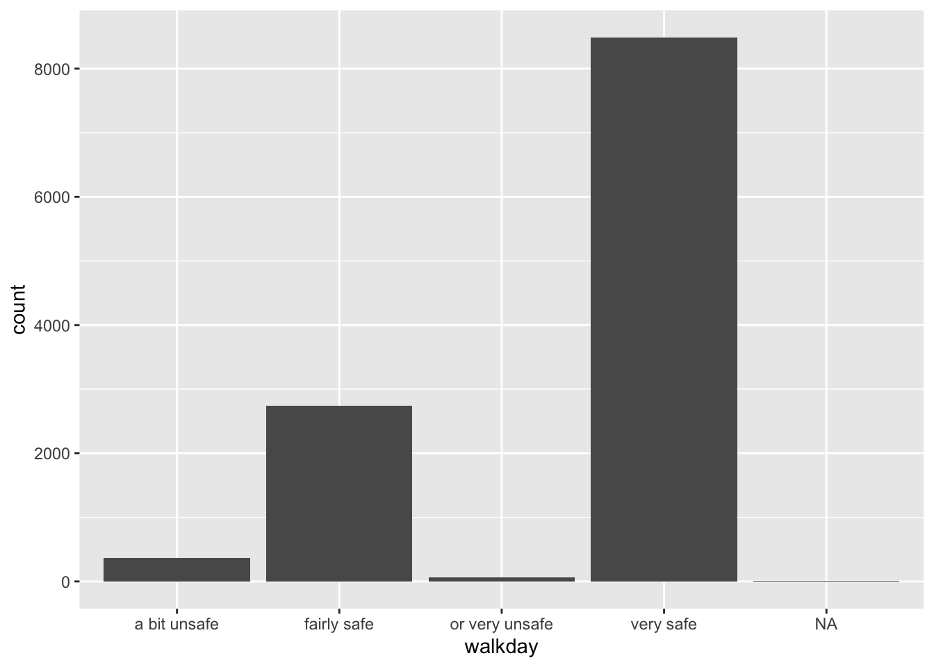 BCS0708$walkdayR <- factor(BCS0708$walkday, levels=c("very safe",